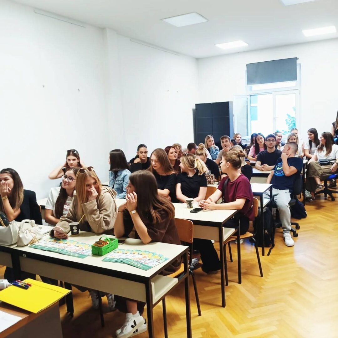 Tom prilikom posjetili su Odjel za talijanistiku gdje su učenici pogledali zanimljiv video posvećen povijesti grada Zadra, na temu ,,Zara, citta senza tempo”, nakon čega su rješavali kviz i dodatne zadatke gdje su povezali znanje talijanskog jezika i povijesti grada vezane na tu temu. Naš bivši učenik Roman Pavić, koji sad i studira talijanski jezik je i sudjelovao u izradi videa te je izrazio veliko zadovoljstvom našom posjetom.