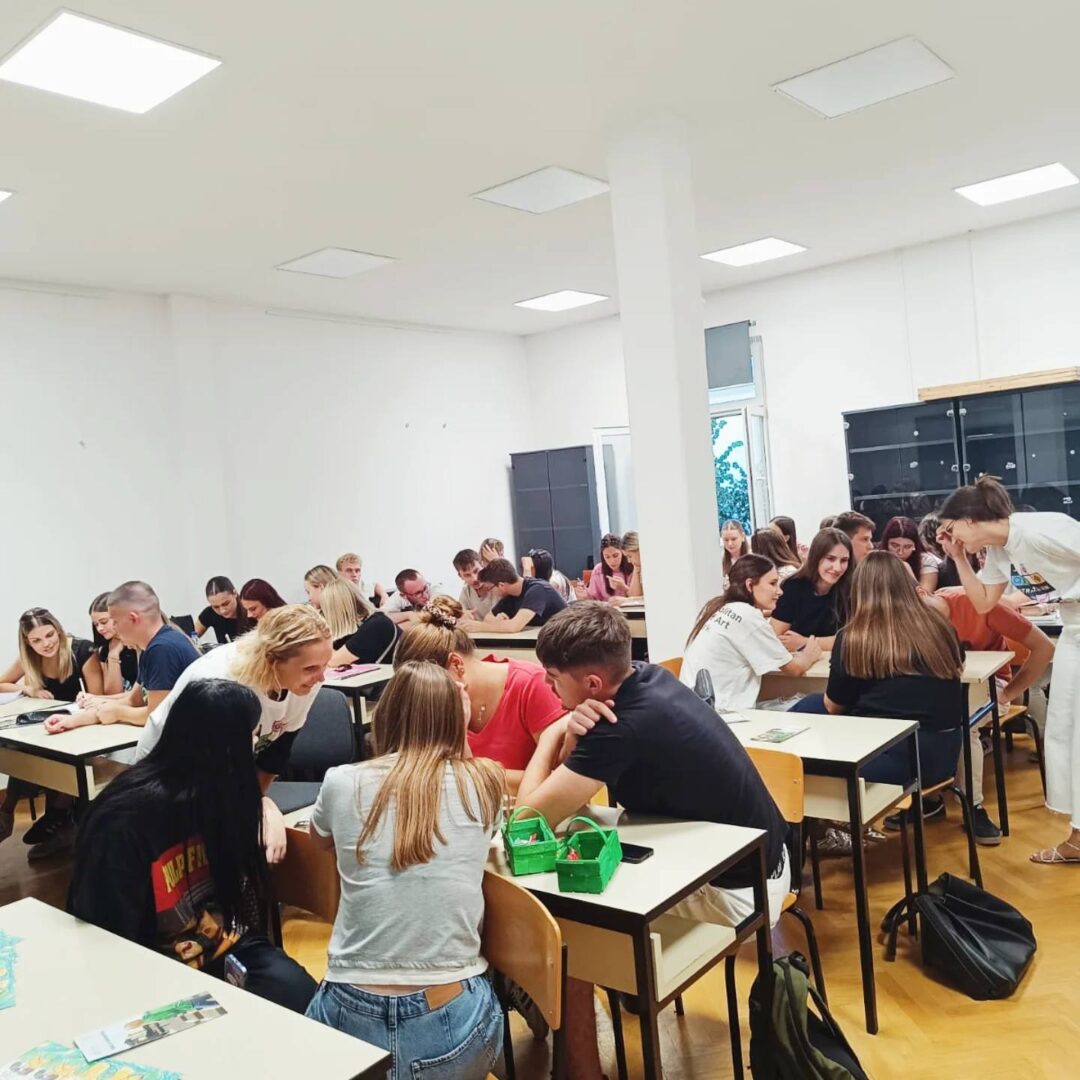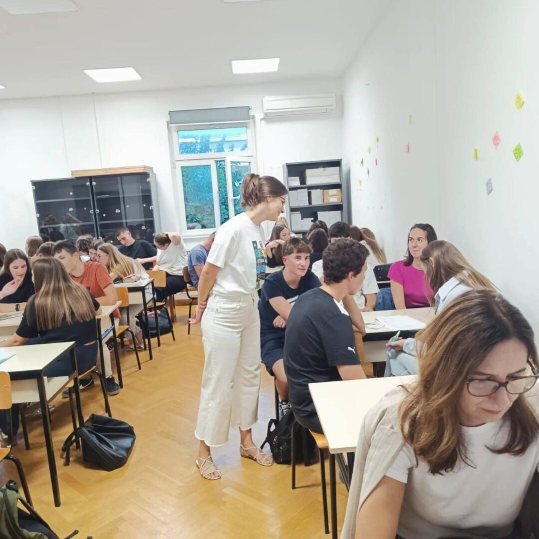Učenici 4.a, 4.b, 4.c, 4.d i 4.e razreda Gimnazije Vladimira Nazora koji uče talijanski jezik, zajedno sa svojim profesoricama Inom Mandžo Fabijanić i Dubravkom Marcelić, 26. rujna sudjelovali su na Europskoj noći istraživača održanom na Sveučilištu u Zadru.