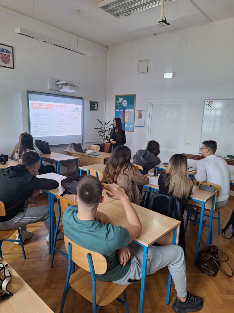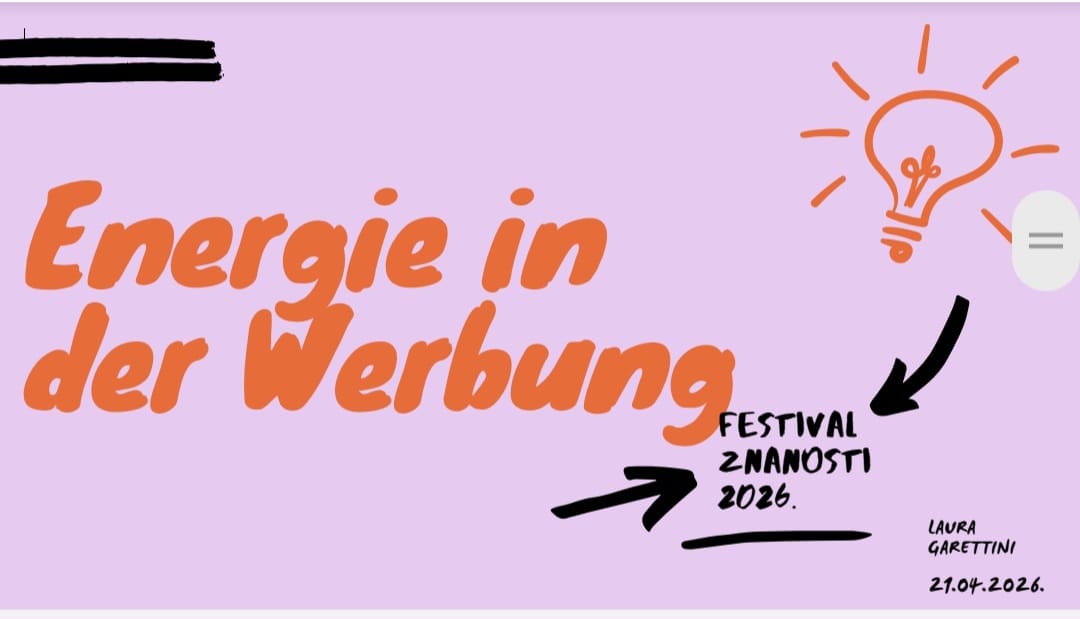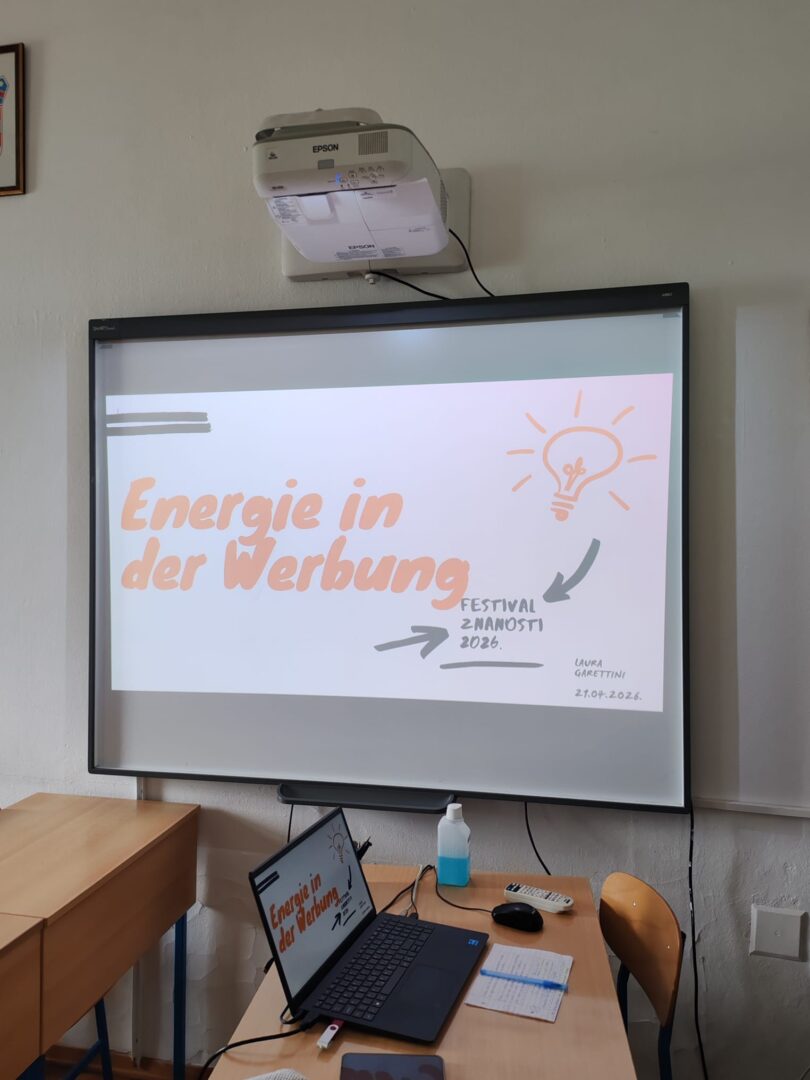 U duhu ovogodišnje teme, i naša je škola sudjelovala u programu Festivala znanosti 2026. U razredima 3.e, 2.b i 4.f, kod profesorica Ane Bjeliš i Suzane Matković, održana je radionica „Energie in der Werbung”, koju je vodila studentica germanistike Sveučilišta u Zadru, Laura Garettini pod mentorstvom prof. dr. sc. Anite Pavić Pintarić.