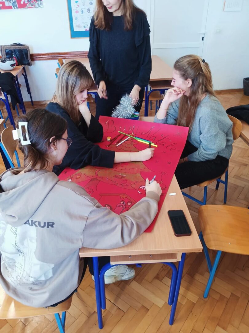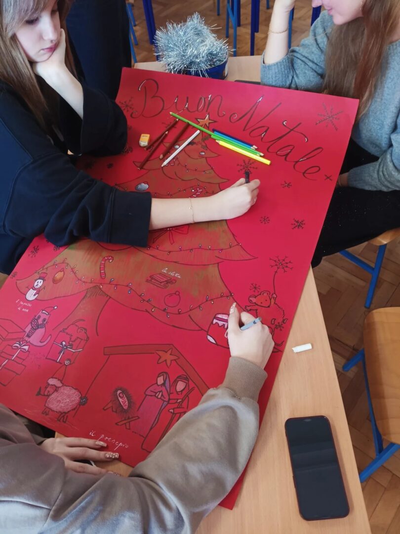 Učenice 4.e razreda koje uče talijanski kao treći strani jezik, Dunja Savić, Enea Nimac i Emili Petrović, pod mentorstvom profesorice Dubravke Marcelić, izradile su božićni plakat povodom nadolazećih blagdana.