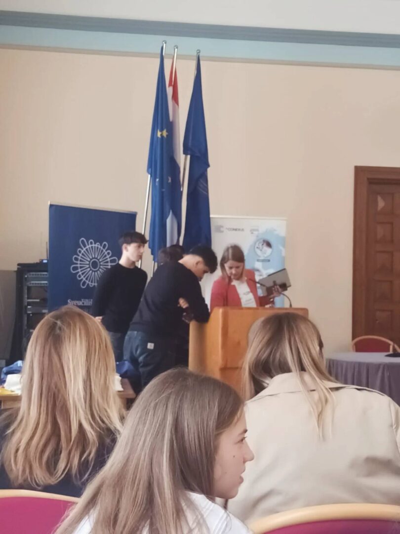 Ponosni smo na naše dvije ekipe – Nazorovci u sastavu Damjan Budimir, Lovre Mandić, Franko Marnika i Josip Miletić i Nazorovci 1 u sastavu Magdalena Čerina, Šimun Kapljić i Mateo Kraljev, pod mentorstvom prof. Irene Pavić, koje su sudjelovale na nacionalnom finalu EU-CONEXUS školskog natjecanja „Misli pametno, kreiraj zeleno”.