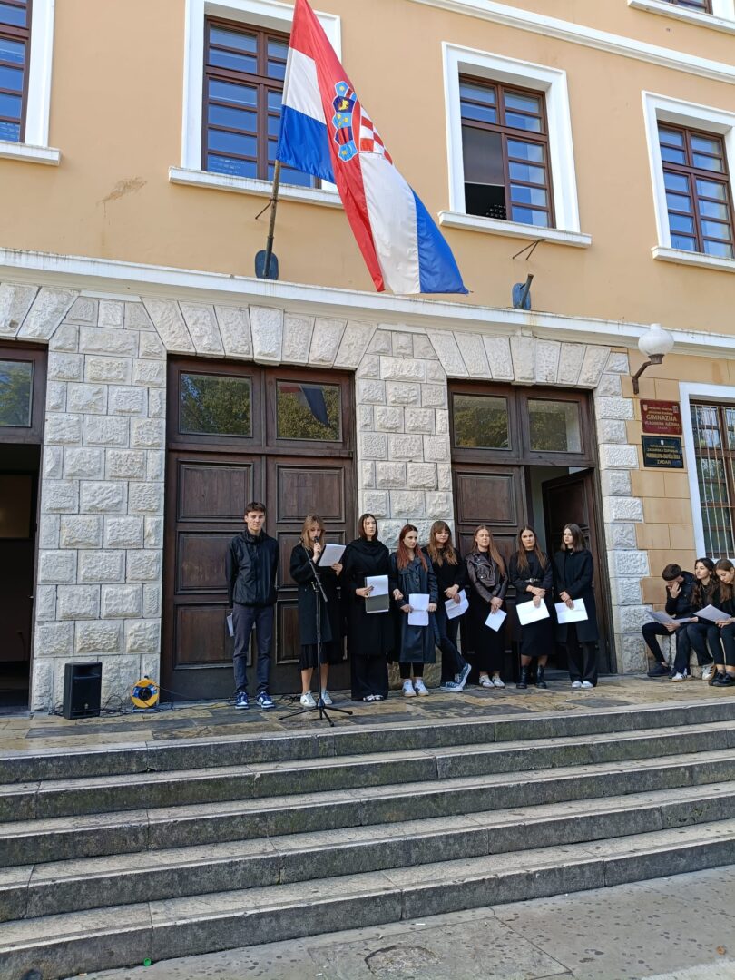 Danas smo u našoj školi, uz duboko poštovanje i ponos, obilježili 18. studenoga — dan koji je osobitim slovima upisan u kalendar hrvatske prošlosti i hrvatskoga naroda, dan kada cijela Hrvatska zastane i utihne pred veličinom žrtve koju su podnijeli Vukovar, Škabrnja i svi branitelji Domovinskog rata.