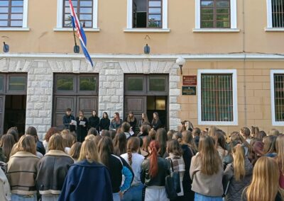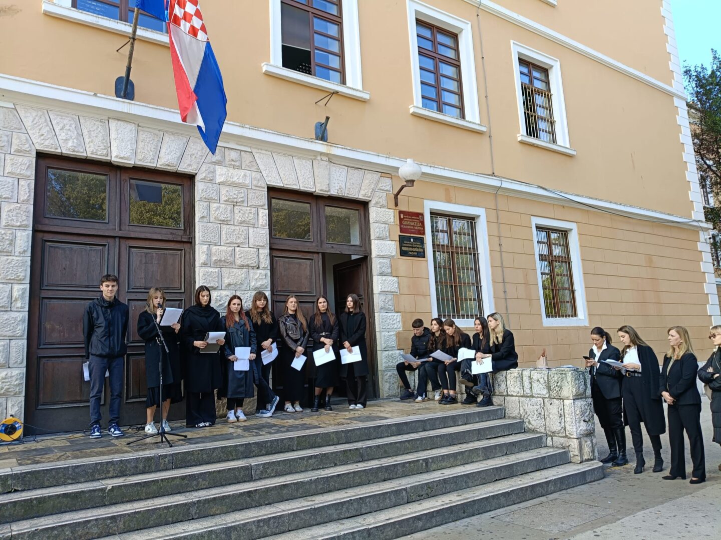 Svečani program pripremili su učenici drugih i četvrtih razreda, uz pomoć profesorica hrvatskog jezika Veronike Jurković Lončar i Antonije Baričević, a program su vodile naše maturantice Đina Medić i Dunja Savić.