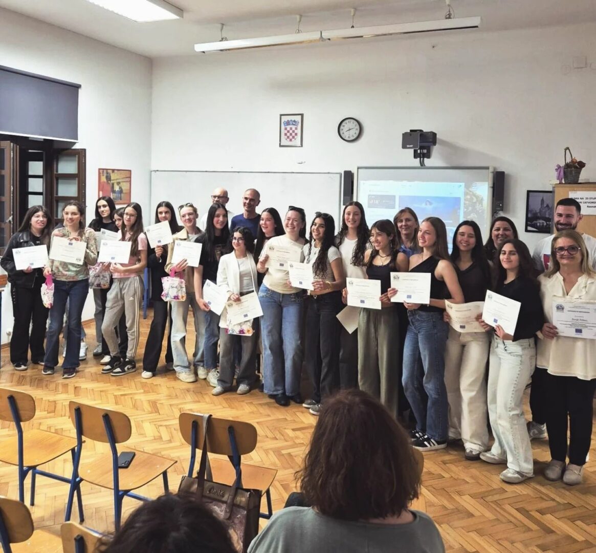 Cijeli proces učenja okrunjen je emotivnim videom koji je zorno prikazao sve dane druženja i rada. U službenom dijelu večeri, ravnateljica škole uručila je svim sudionicima certifikate o sudjelovanju te prigodne poklone koji će im ostati kao trajna uspomena na boravak u našoj školi.