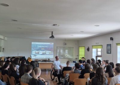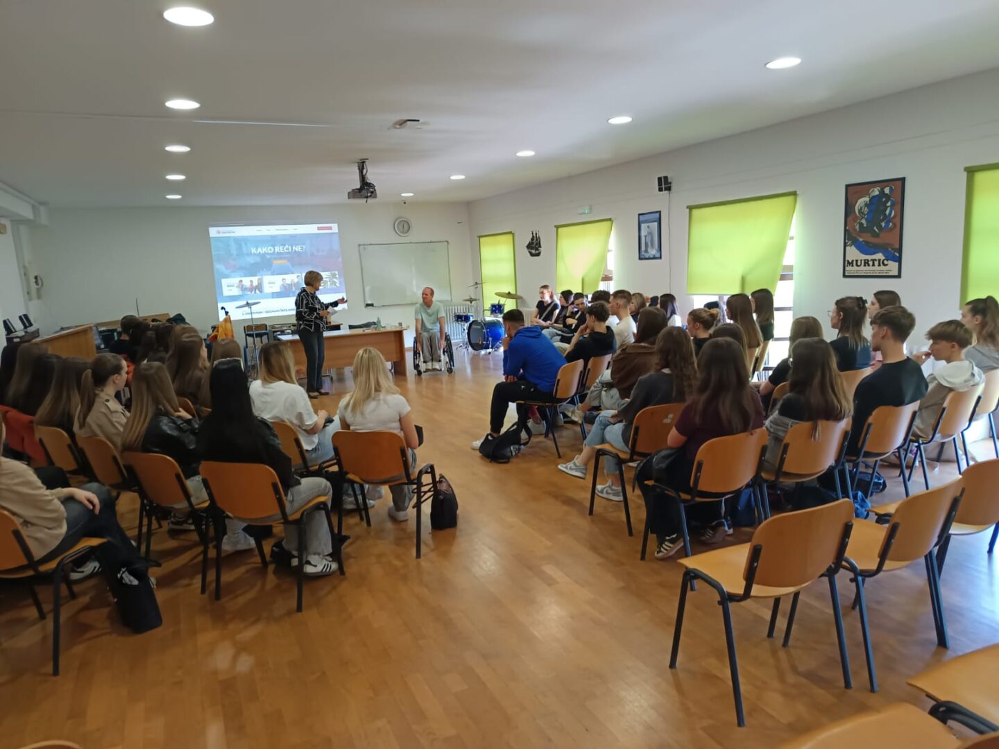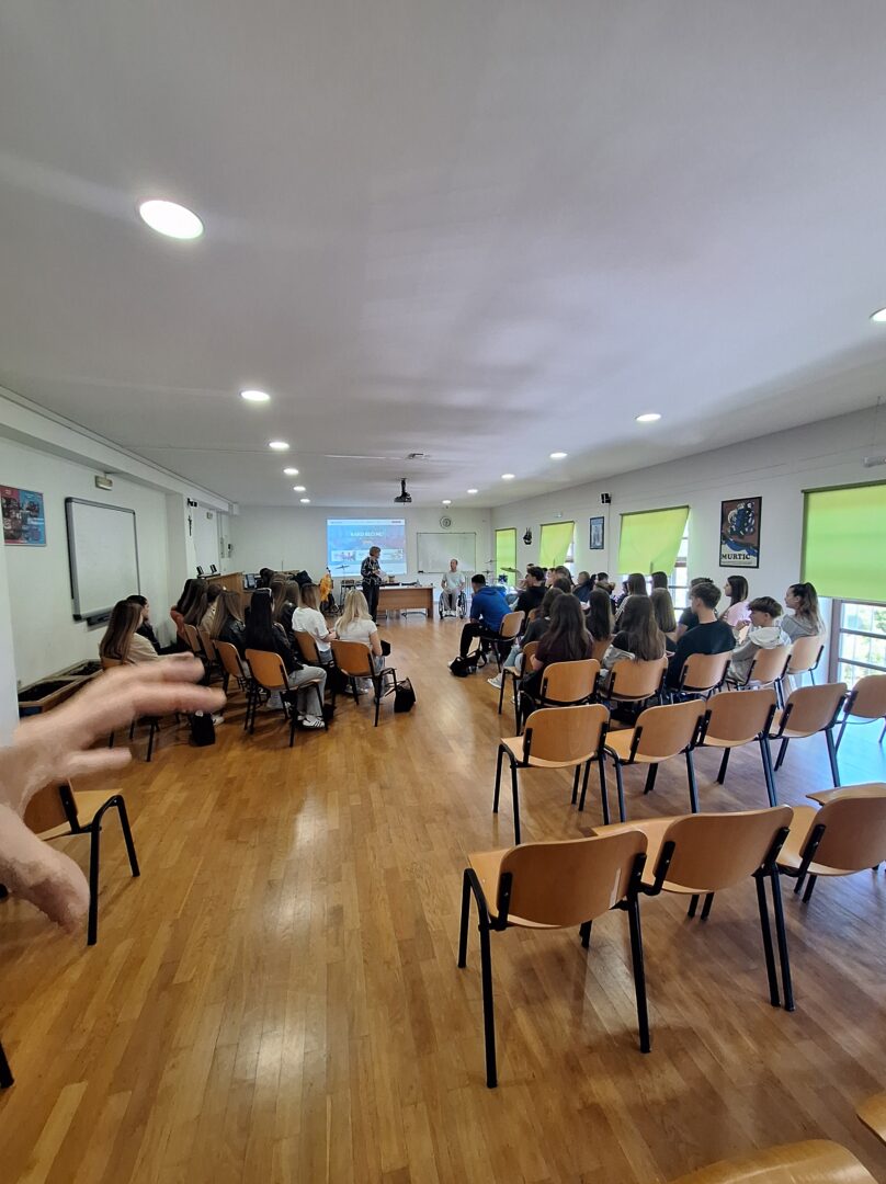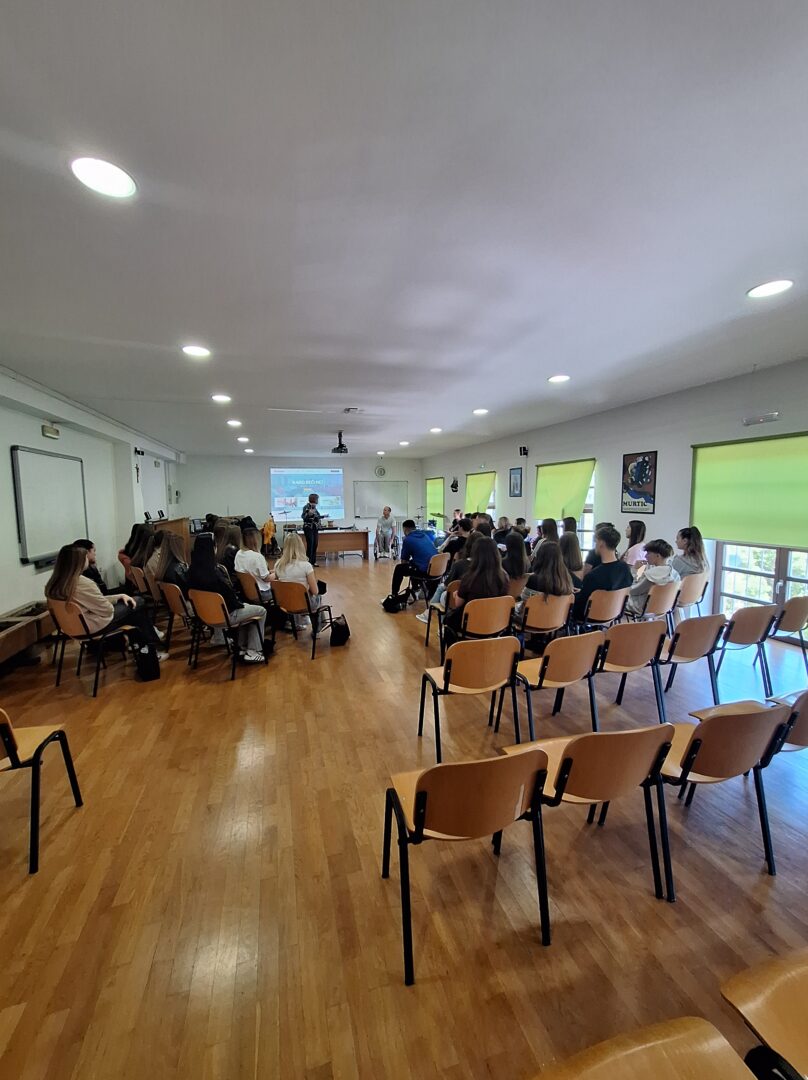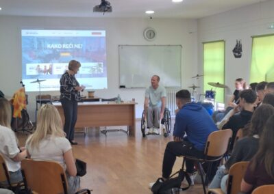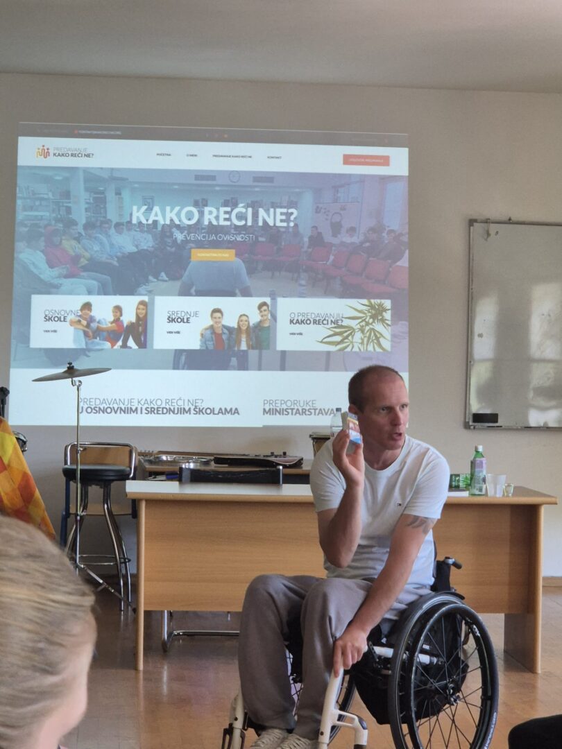 U našoj je školi u ponedjeljak, 27. travnja i u utorak 28. travnja održano predavanje „Kako reći ne?“, koje se bavi tematikom ovisnosti te potiče kritičko promišljanje učenika o toj temi. Predavanje prati smjernice međupredmetnih tema Građanskoga odgoja te je jedan segment školskih preventivnih programa. Predavanje je održao član udruge Stijena kojega su učenici sa zanimanjem slušali te postavljali pitanja.