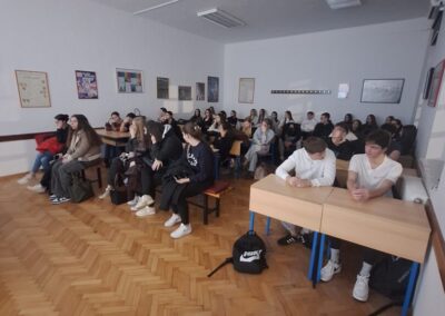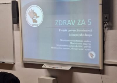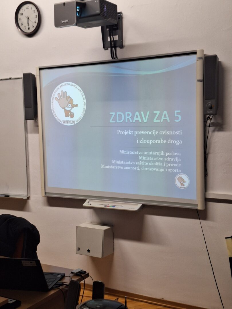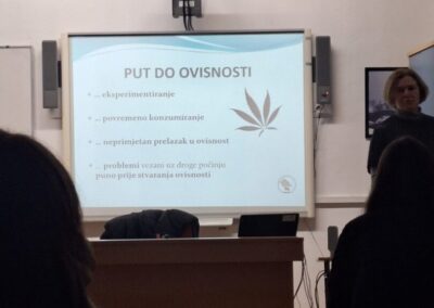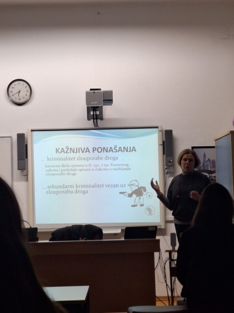 Pored ostalih aktivnosti, organizirali smo predavanja za učenike prvih i drugih razreda koja su održali djelatnici MUP-a iz Odjela za prevenciju. Učenici su imali priliku čuti vrlo korisne informacije o štetnosti i posljedicama konzumacije droga, a posebno marihuane koja je mladima najdostupnija. Također, upućeni su i u zakonski okvir vezan uz zlouporabu droga, a posebno u dio koji se odnosi na njih maloljetnike. Osim toga, zbog sve učestalijeg korištenja nikotinskih vrećica koje mladi smatraju bezazlenima, bilo je riječi i o njihovom štetno utjecaju na zdravlje. Iz iskustva predavača čuli su i nekoliko tragičnih situacija i preporuke kako izbjeći ulazak u svijet konzumenata.